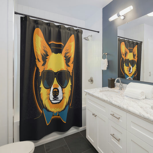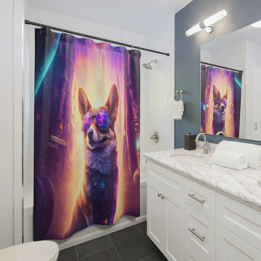 Cyberpunk Corgi With Sunglasses Shower Curtain